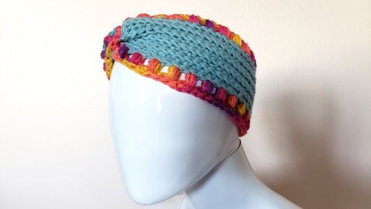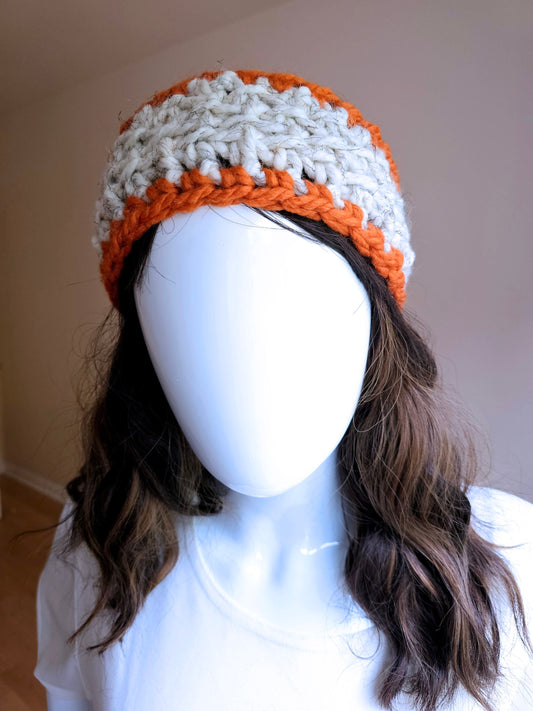 Wool Blend Ear Warmer. Crochet Headband. Handmade Headwear. Pumpkin and Cream. Adult size headband. Unisex Gifts. Hand Knit Ear Warmer.