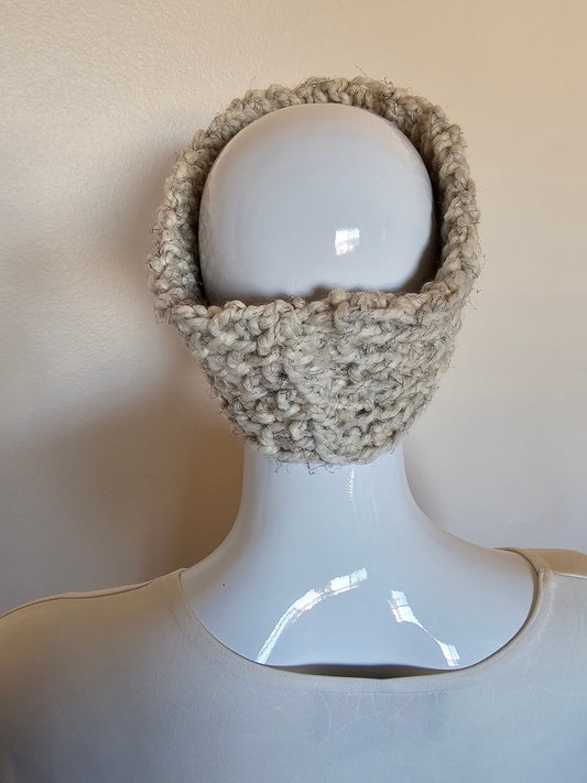 Wool Blend Ear Warmer. Crochet Headband. Handmade Headwear. Wheat Tweed Ear Warmer. Adult size headband. Unisex Gifts. Hand Knit Ear Warmer.