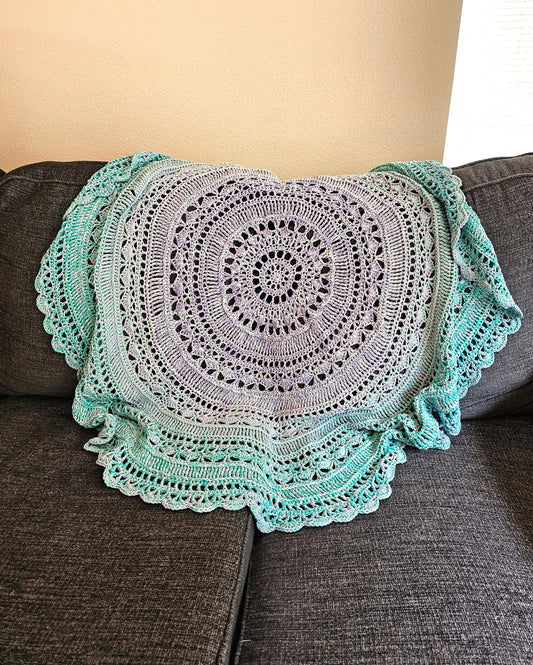 Wagon Wheel Rug. Cotton Afghan. Pastel decor. Crochet tablecloth. Versatile crochet decor. Round blanket. Circular rug. Pastel Pi Shawl.