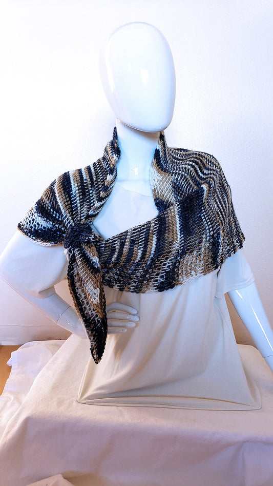 Wool Silk Shawl. Black Gold and Cream. Kerchief wrap. Textured shawl. Silk winter scarf. Gifts for her. Shawl scarf. Tunisian Crochet.